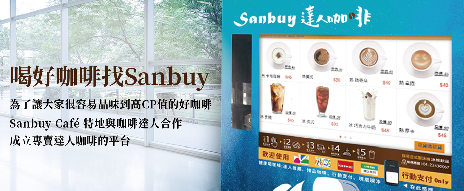 速咖科技股份有限公司,由專研20年以上專業健康設備與產品開發,擁有軟硬體系統整合的專業研發經驗的團隊,再結合IOT等相關科技,為台灣專業物聯網販賣機領導廠商之一,結合專業的全自動販賣機再加上物聯網科技趨勢,創立Sanbuy智能咖啡機品牌,打造新型態咖啡休閒小站,將線上與線下整合,自動現磨、嚴格控管物料及機台維護,提供給使用者輕鬆優雅氣氛、快速方便美味又安全的咖啡享受!Sanbuy秉持更快速、方便的生活步調,規劃在學校、商辦、廠區擴大佈點,並透過實體活動、數位行銷推廣,實現消費者對Sanbuy 品牌認知、知名度與偏好度。
